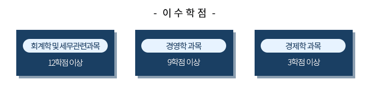 - °øÀÎȸ°è»ç ½ÃÇèÀº ±¹Àû, ÇзÂ, ¿¬·É ¹× °æ·Â¿¡´Â Á¦ÇÑÀÌ ¾øÀ¸³ª, 2007³â 1¿ù 1ÀϺÎÅÍ 'ÇÐÁ¡À̼öÁ¦µµ'°¡ ½ÃÇàµÇ¾î, 'Çб³ µî¿¡¼ ÇÐÁ¡À̼ö ÇØ´ç°ú¸ñº°·Î ȸ°èÇÐ ¹× ¼¼¹«°ü·Ã°ú¸ñ 12ÇÐÁ¡ ÀÌ»ó, °æ¿µÇаú¸ñ 9ÇÐÁ¡ ÀÌ»ó, °æÁ¦Çаú¸ñ 3ÇÐÁ¡ ÀÌ»óÀ» À̼öÇÑ ÀÚ ¶Ç´Â À̼öÇÑ °ÍÀ¸·Î ÇÐÁ¡ÀÎÁ¤À» ¹ÞÀº ÀÚ'¸¸ÀÌ °øÀÎȸ°è»ç ½ÃÇè¿¡ ÀÀ½ÃÇÒ ¼ö ÀÖ½À´Ï´Ù.